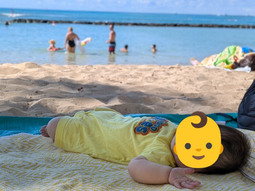 滞在最後のワイキキビーチを堪能し、自分たちのお土産も買い切ったあと、借りていたベビーカーを返却し、早めのホテル戻り。