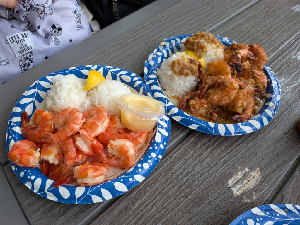 シュノーケリングを楽しみ、お腹を空かせた一行は、ハレイワタウンへ移動。Sharks Cove付近にもいくつかフードトラックはありましたが、けっかくノースショアまで足を伸ばしたのであれば、ハレイワタウンまで行っておこう!ということで、ハレイワタウンでおそらく最も有名なガーリックシュリンプ屋「ジョバンニ」へ!